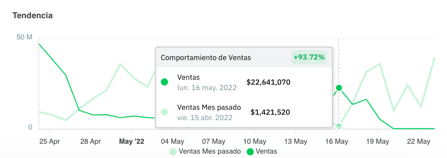 Compara tus ventas contra períodos anteriores.
